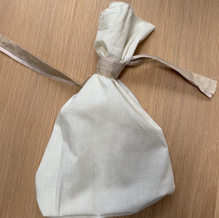 The doorstop is supplied flat for easier posting. It comes with a bag to slip inside, to hold the filling, made from reclaimed curtain lining which you can fill with rice, sand, beans, cat litter, gravel as you prefer. A layer of reclaimed fabric is used to provide an internal layer of stability so that the doorstop holds its shape.