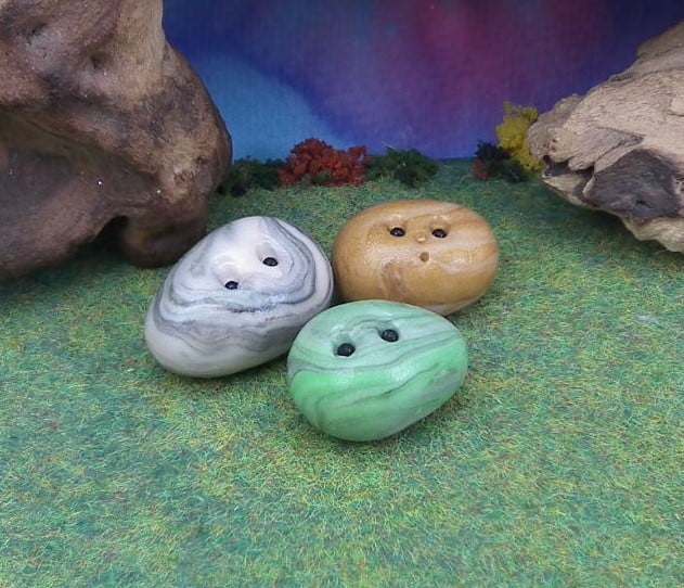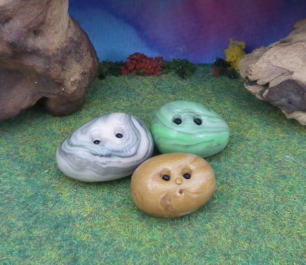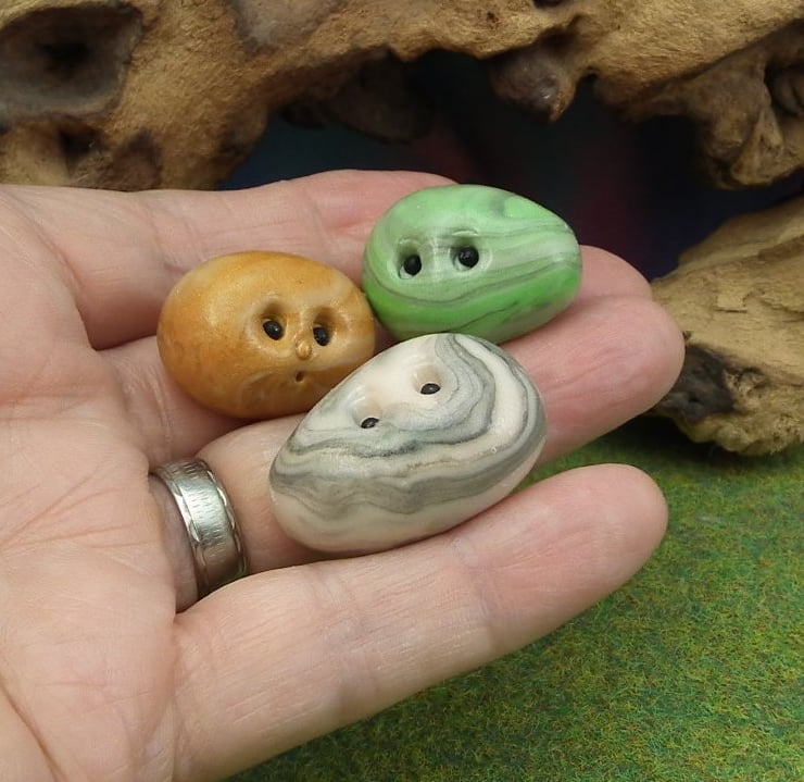 These are 'one of a kind' creations having been entirely handmade without the use of moulds here at my studio on the Sussex Coast. You will receive the three pebbles in the photos. Not suitable for small children.