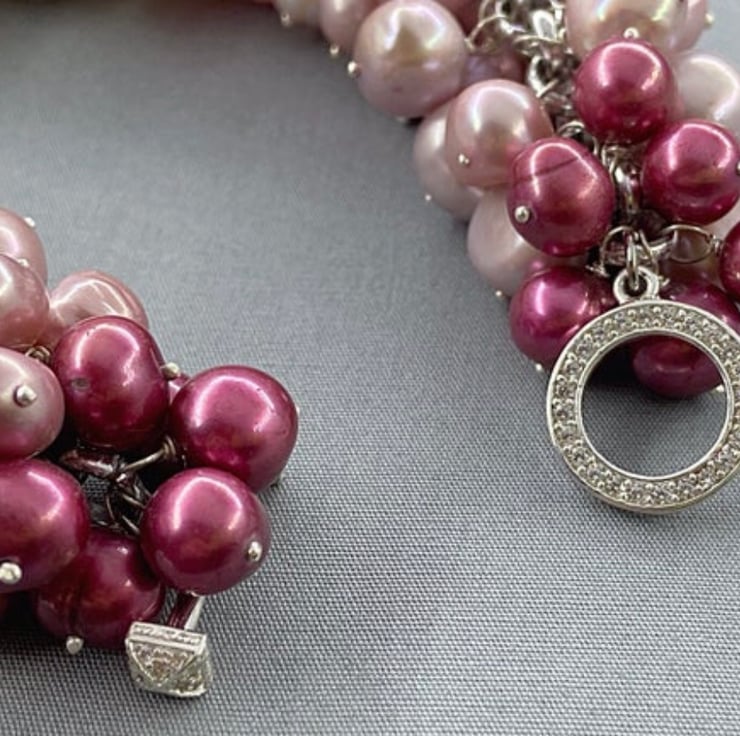 Pink Ombré Cultured Pearl Bubble Style Cluster Bracelet & Earring Set