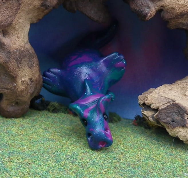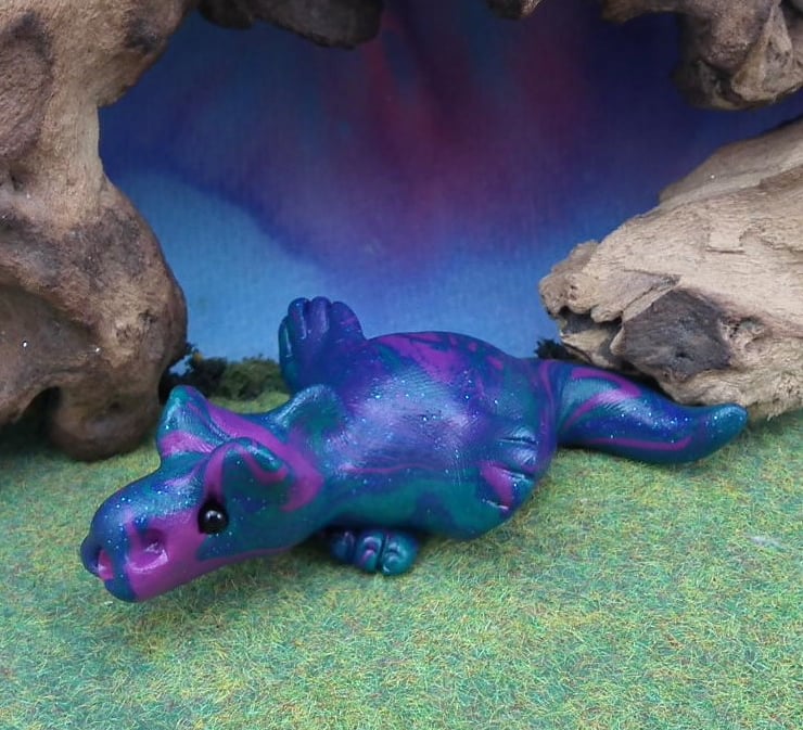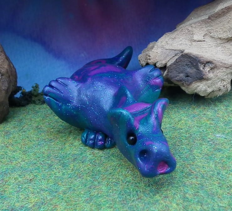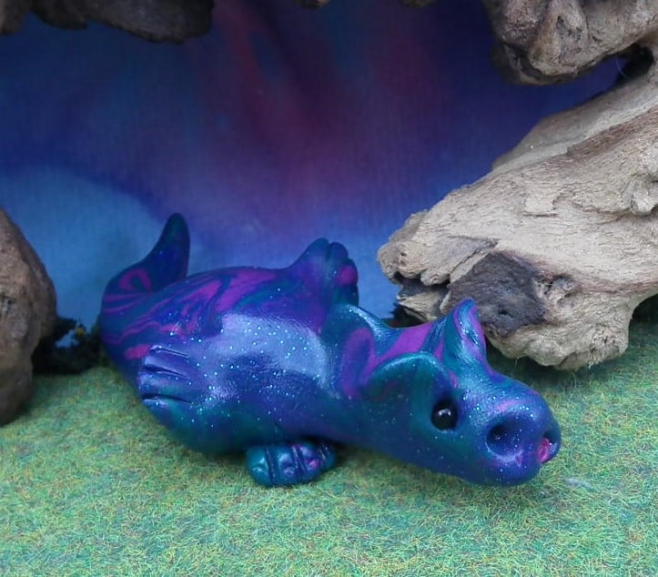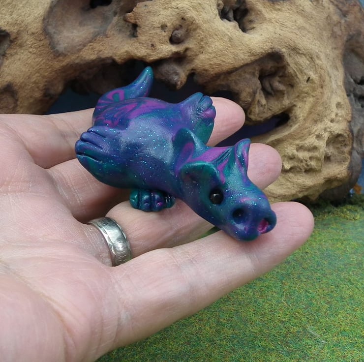 A 'one of a kind' creation having been entirely handmade without the use of moulds here at my studio on the Sussex Coast. Modelled with my own blend of polymers before sealing with lacquer. Meerah is three inches from snout to tail ...