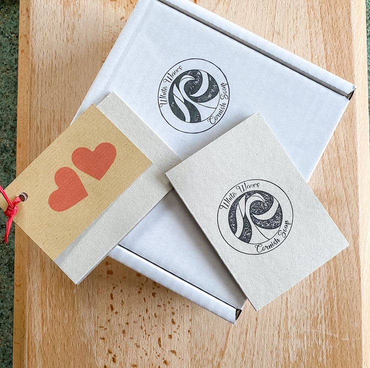 Each gift is tied with a ribbon inside the box (ribbon may vary from that shown, but will always be plastic free), supplied with a gift card and envelope. I can write a short message in the card for you, or it can be left blank for you to personalise!