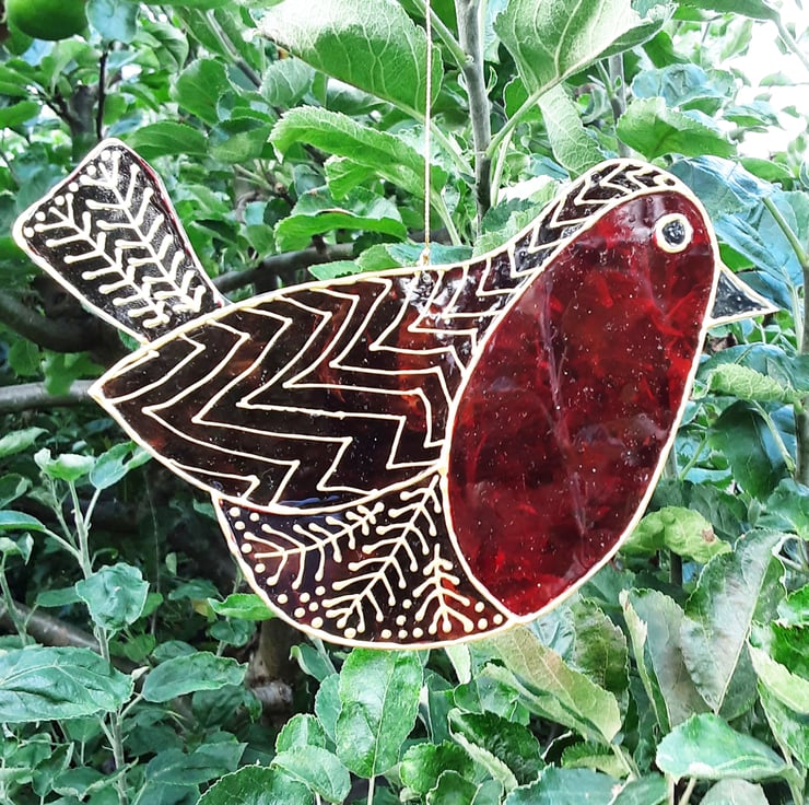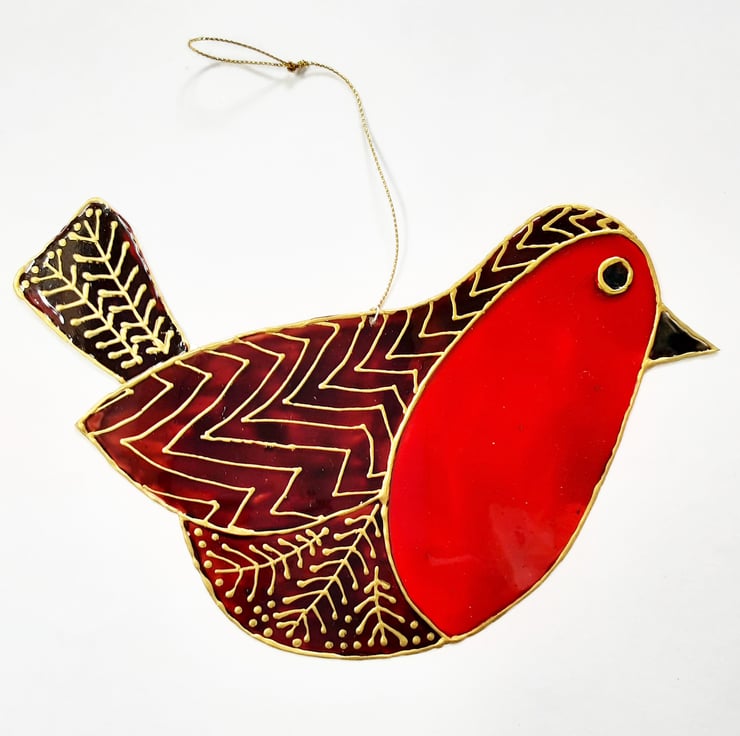 This is a handmade, handpainted robin suncatcher