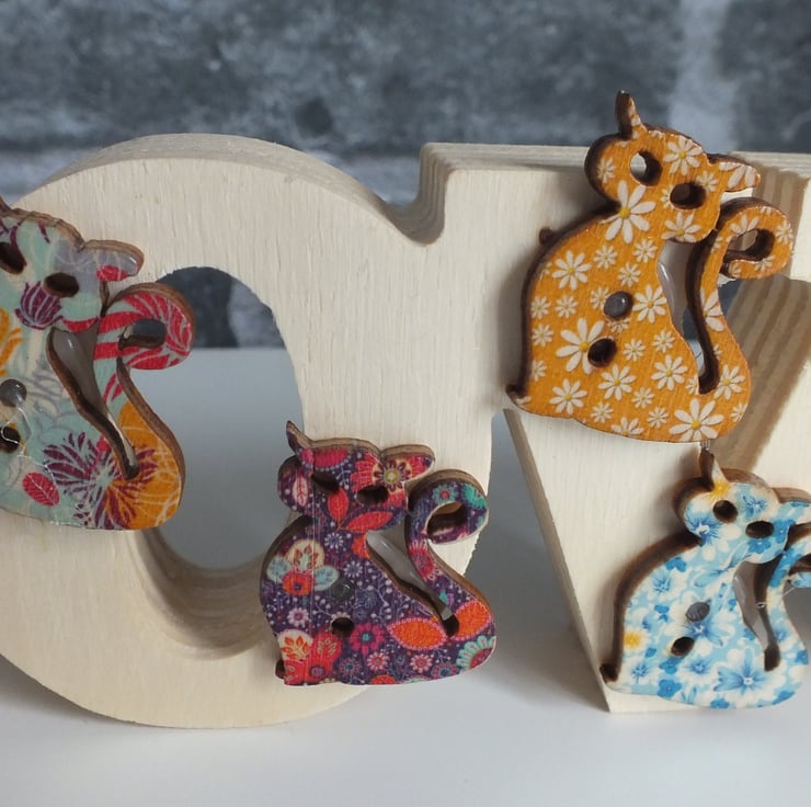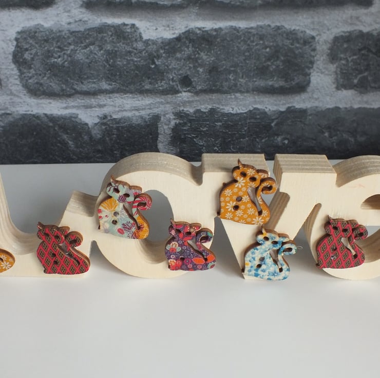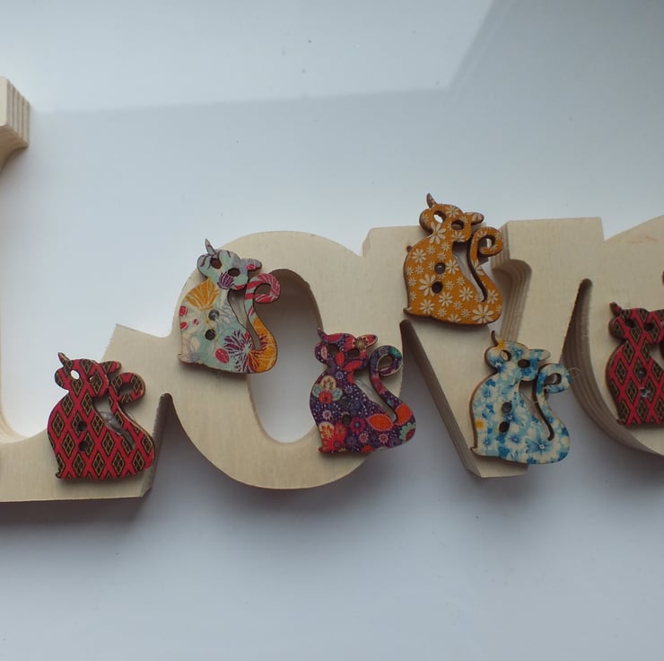 It is a very simple but striking decoration where the wood has been left un-painted but has been sealed with spray sealant. The colour comes from the beautiful cat buttons which have been used to decorate the ornament.