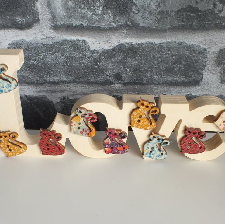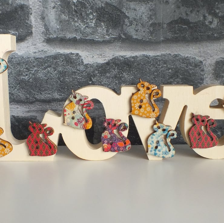 This is a free standing wooden 'Love' word which has been decorated with cats!