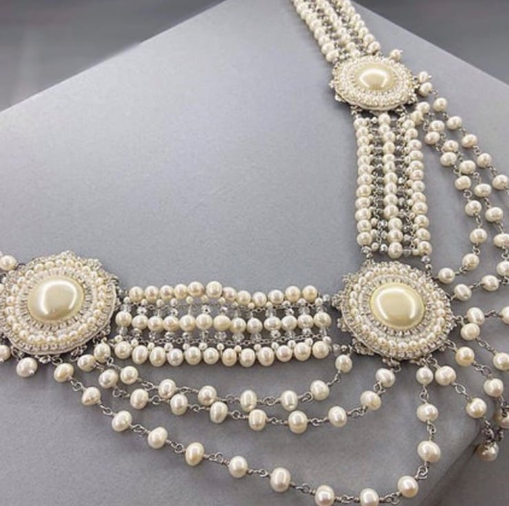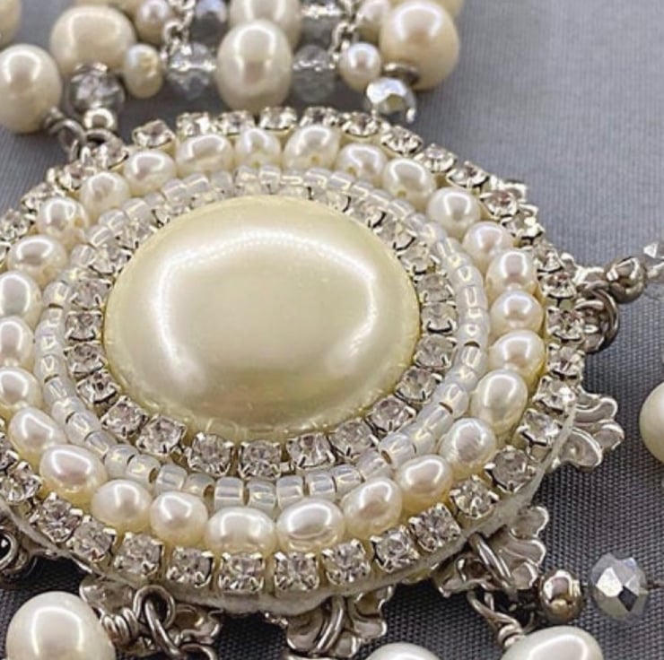 I had/have the cultured pearls and thought why not go all out and make a real statement piece using the pearls. This is what I came up with. It took me around 2 days to make. I thoroughly enjoyed making it and would be a little sad to see it go as it’s one of my favourite makes. Team this up with the bridal crown and you will be the belle of the ball, draped in pearls! With all eyes will be on you.
