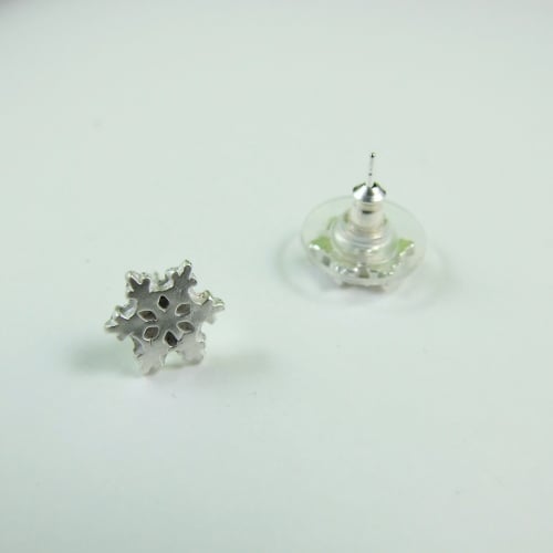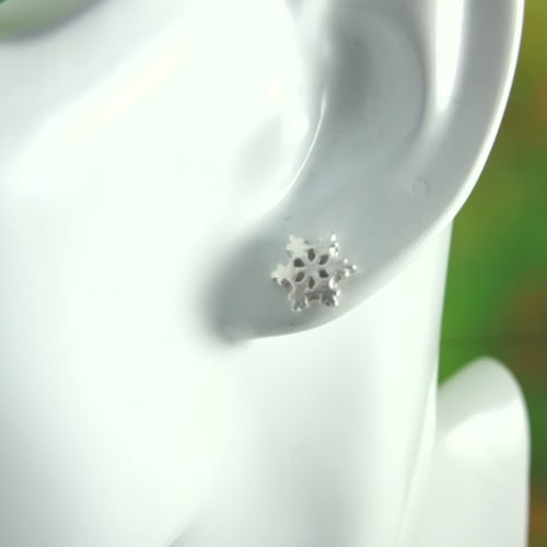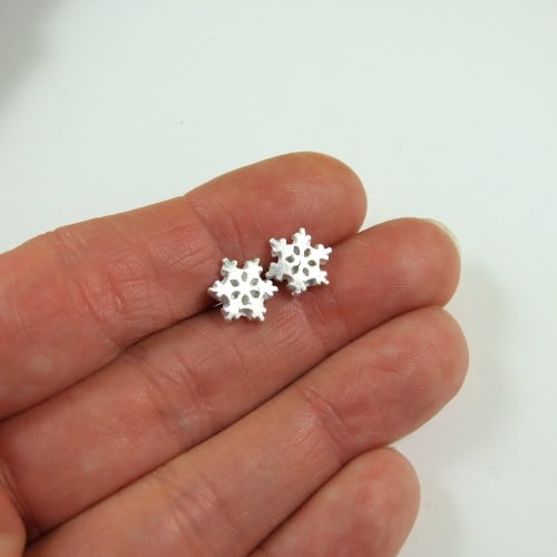 The little snowflakes have been created from recycled sterling silver, pressed into a mold and kiln fired to create these pretty snowflakes. Soldered to regular .925 sterling silver ear posts with butterfly backs and give a matte frosty finish.