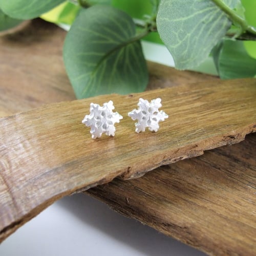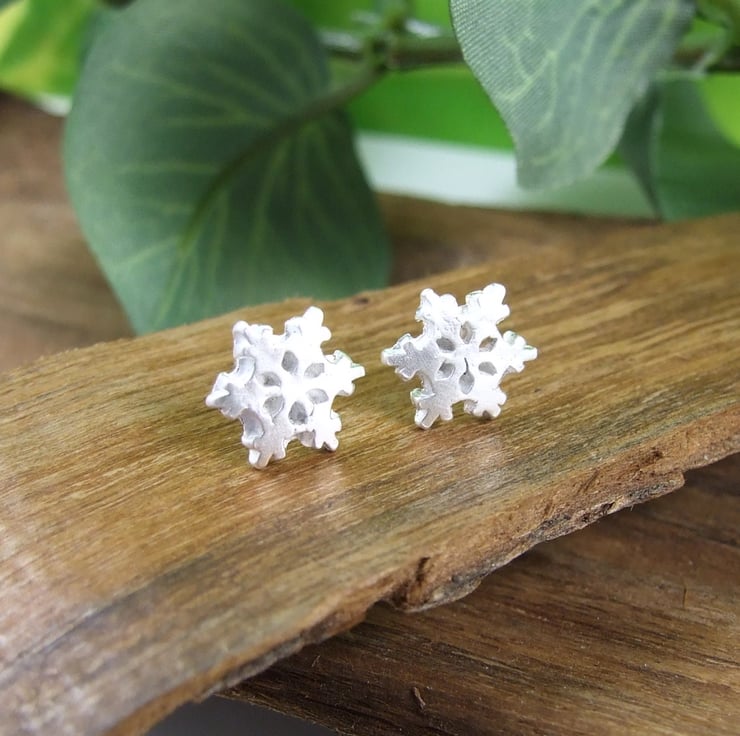 Silver Snowflake Studs. Recycled Silver 10mm earrings.