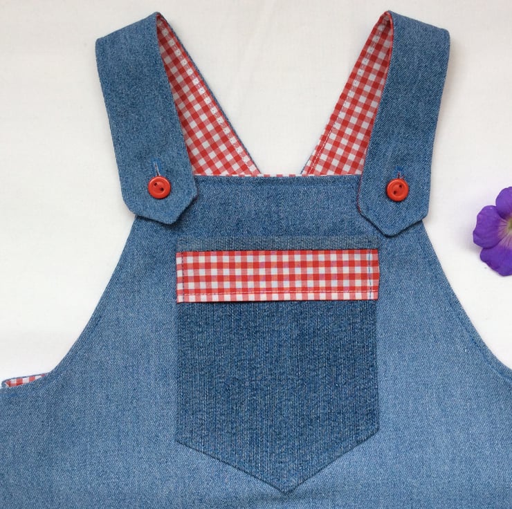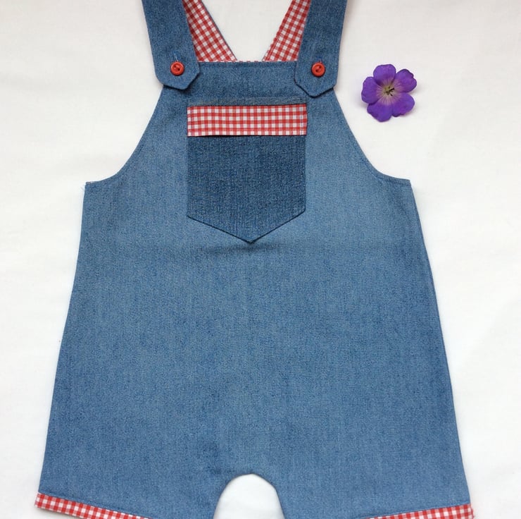 Denim and Gingham romper to fit age 6-9 months.
