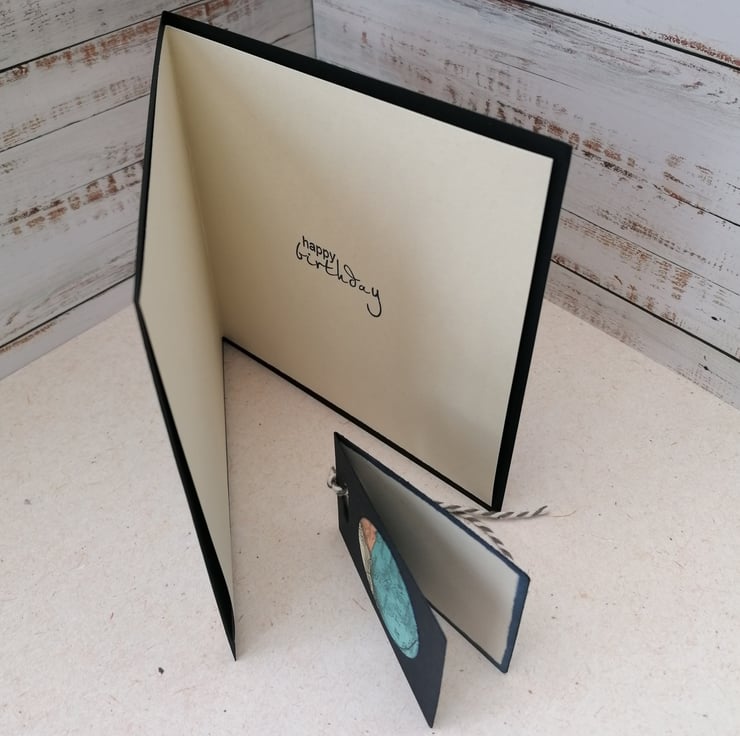 Card measures approx 14.5x14.5cm and the insert has been hand stamped with "happy birthday"