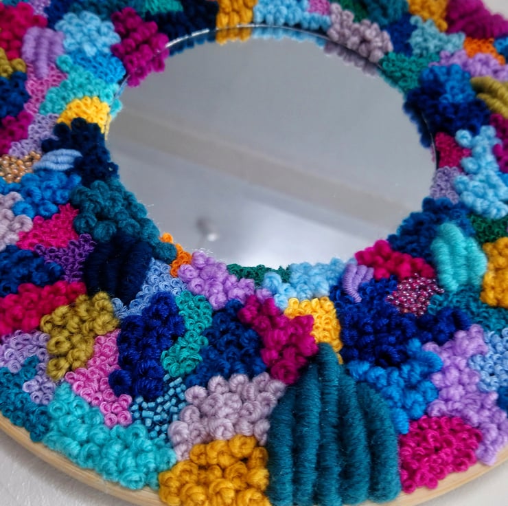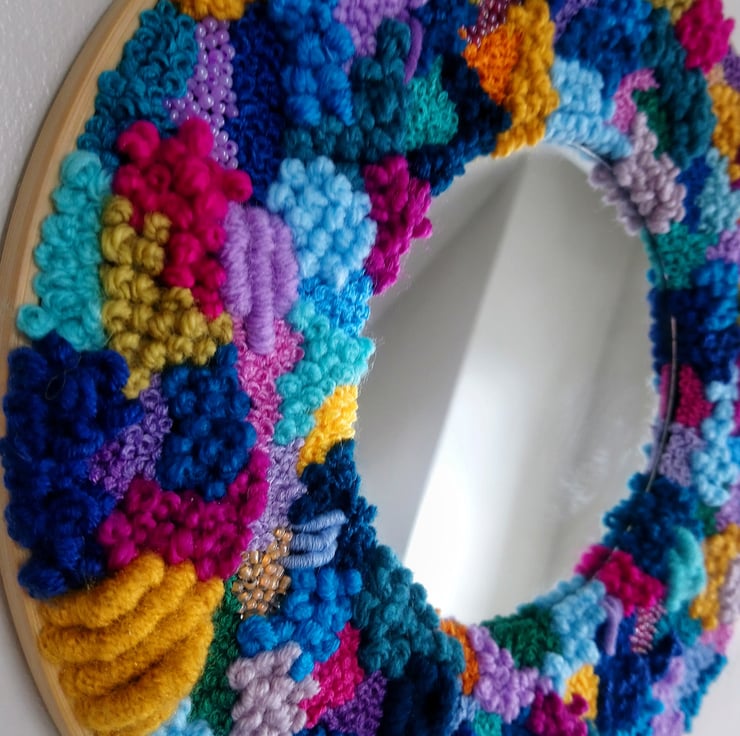 Iris is an 9 inch mirror that marries art and the practical to create a one of a kind piece of home decor art.