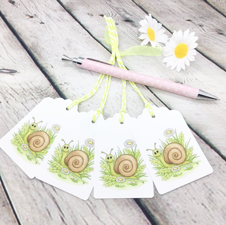 These cute Snail gift tags have been designed using my own original watercolour illustration. I have designed them to match and compliment my handmade cards in the same design.