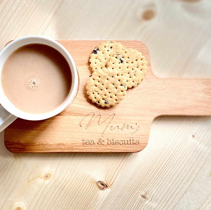 This engraved mini serving board is the perfect size for a drink and treat. A great personalised gift for any tea or coffee lovers!