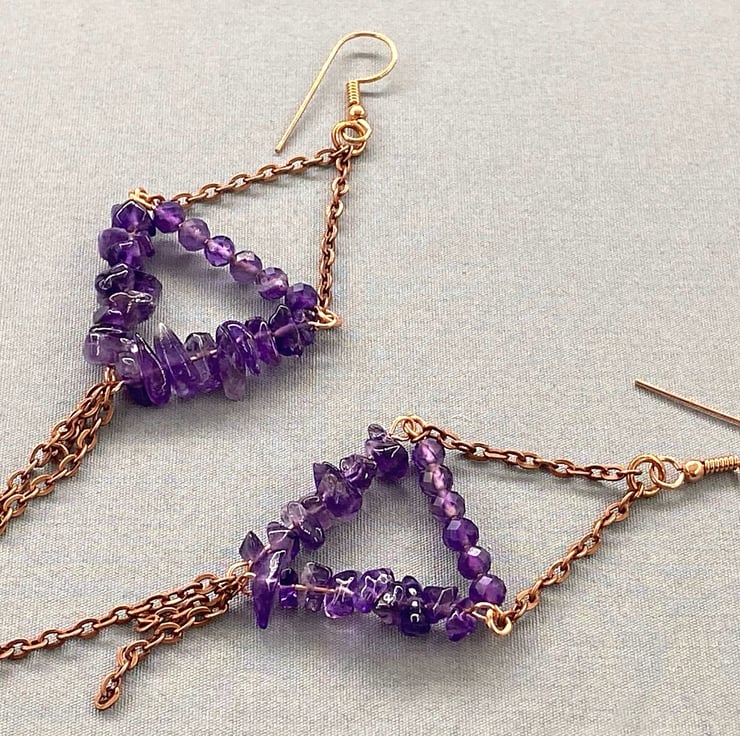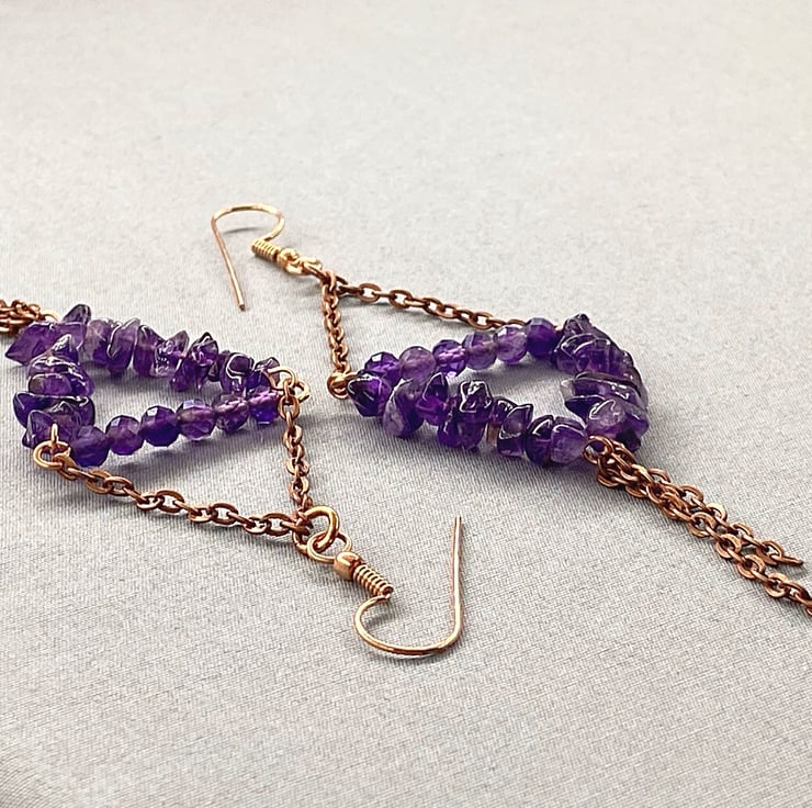 A boho style tassel earrings featuring amethyst. They’re dainty enough for work