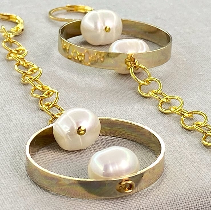 Made with 24K filled copper rings and chain with gold filled stainless steel lever backs.