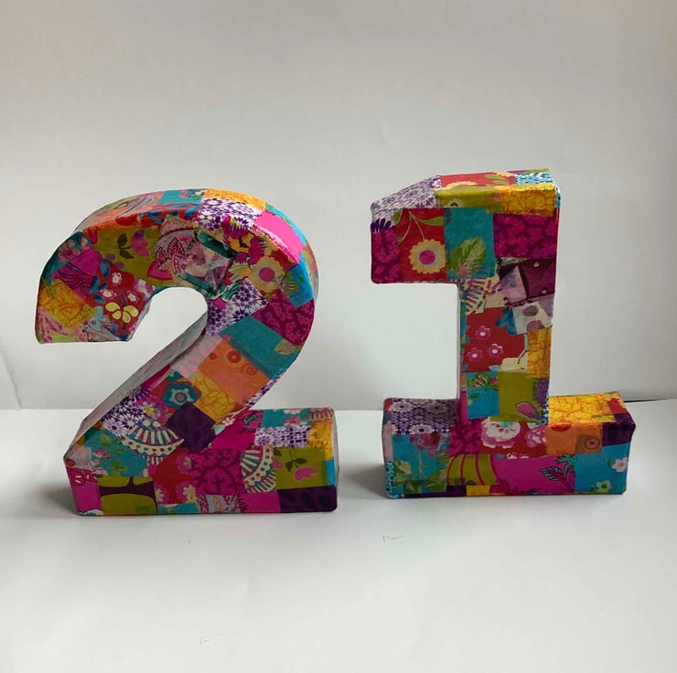 21 in colourful pretty decopatched numbers