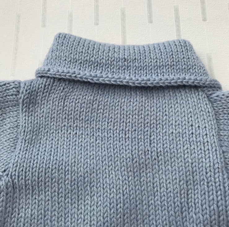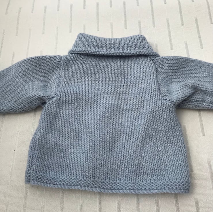 The pattern size is for a 6mth old baby and it measures 46cm across the chest, 22cm long and the sleeves are 15cm.