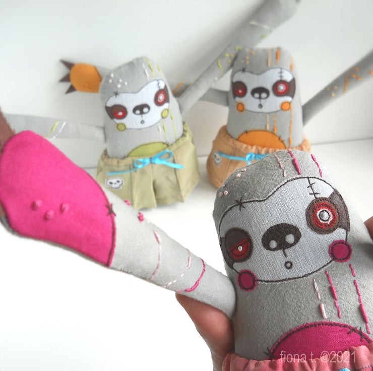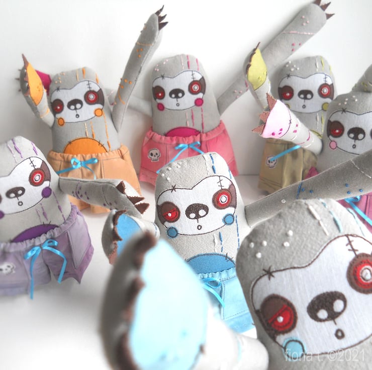 due to very nature of handmade, hand dyed & free hand embroidery, each zombie will vary eeever so slightly.