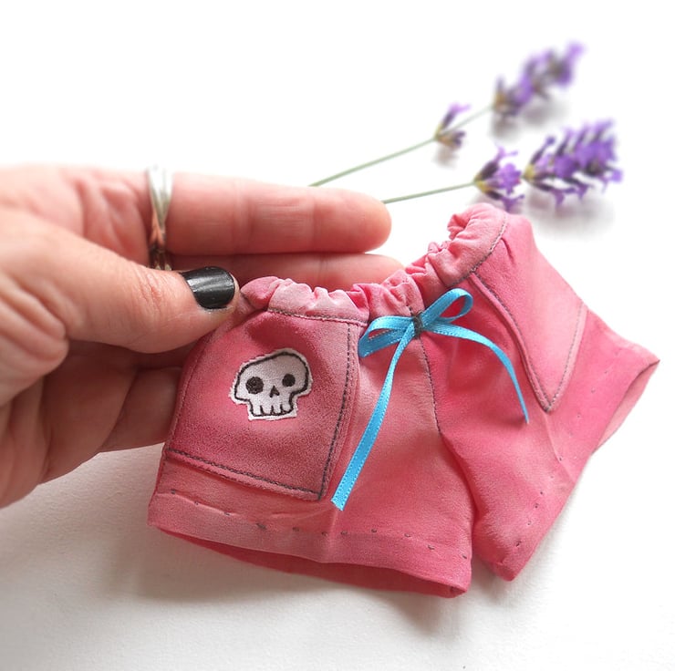 this limited edition sleepy sloth wears bespoke hand tailored pink silk pyjamas. the skull embroidered pocket is fully lined for carrying important snacks & tissues. obviously.