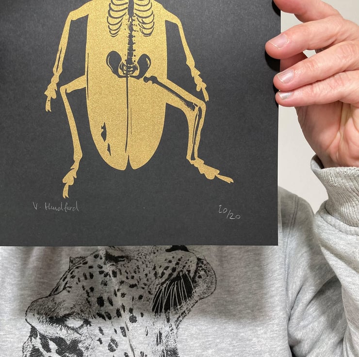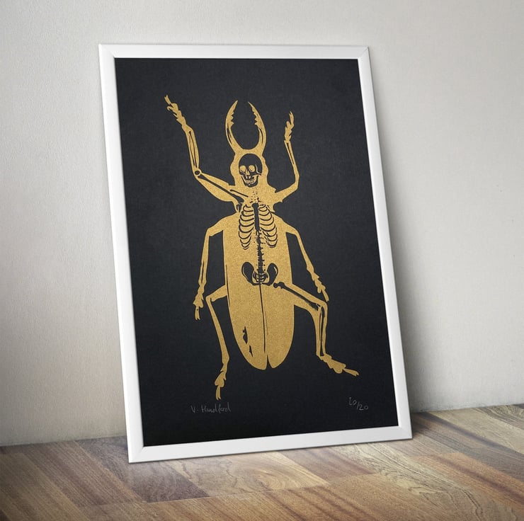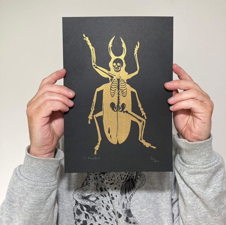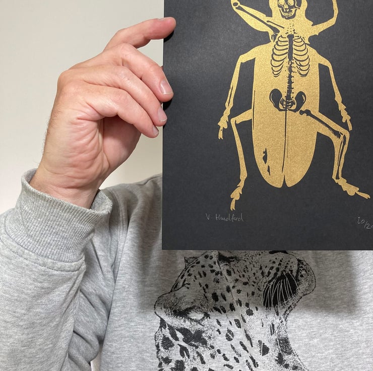 Metamorphosis (based on the Franz Kafka novel) A4 Screen With Gold Ink Handmade Printed on lovely Black GF Smith Colorplan Paper Limited Edition of 20 Prints