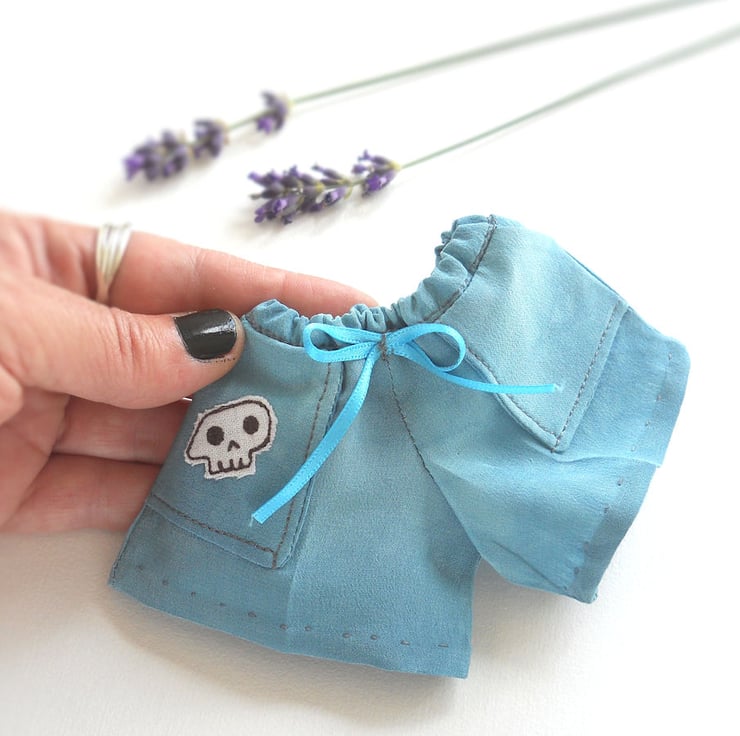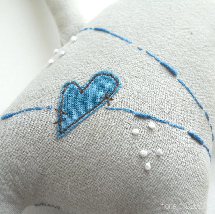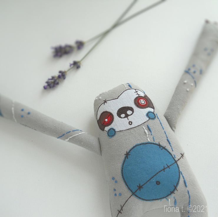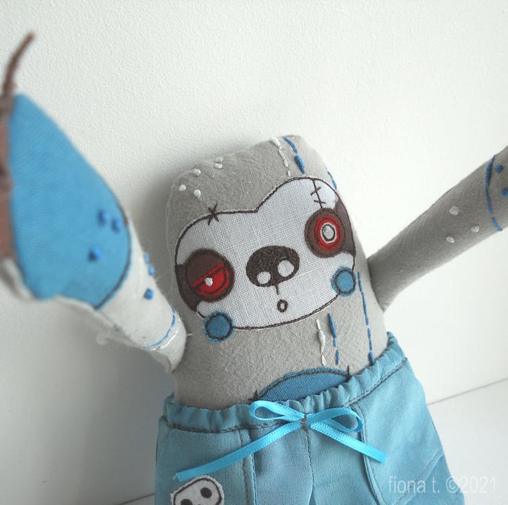 i’ve hand dyed the cotton calico a mottled corpse-grey colour, his face is pale blue irish linen.