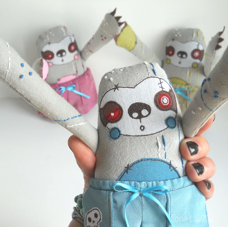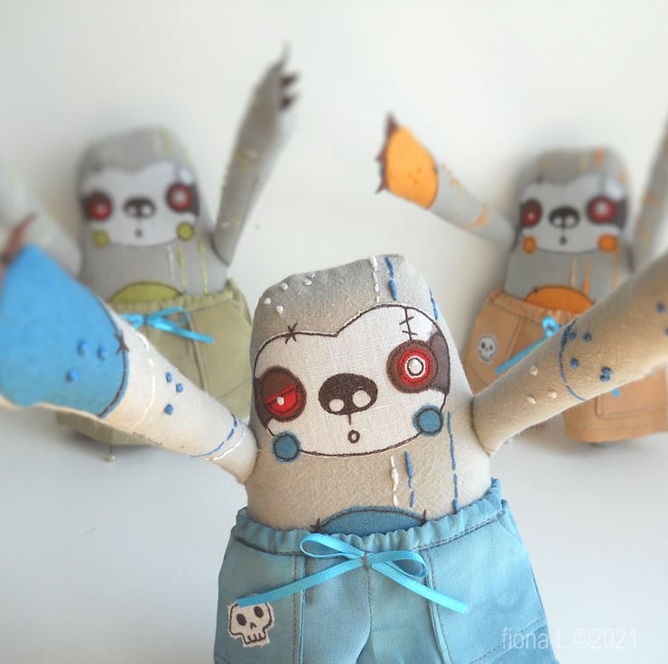 due to very nature of handmade, hand dyed & free hand embroidery, each zombie will vary eeever so slightly.