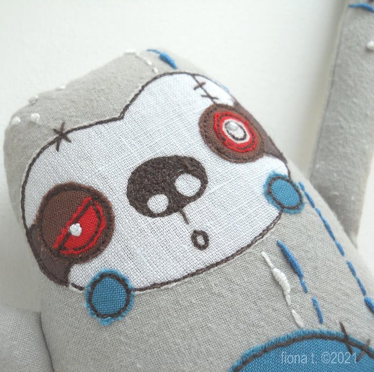 the sloths themselves have been made entirely on a domestic sewing machine, everything is cut, stitched & drawn freehand by me.