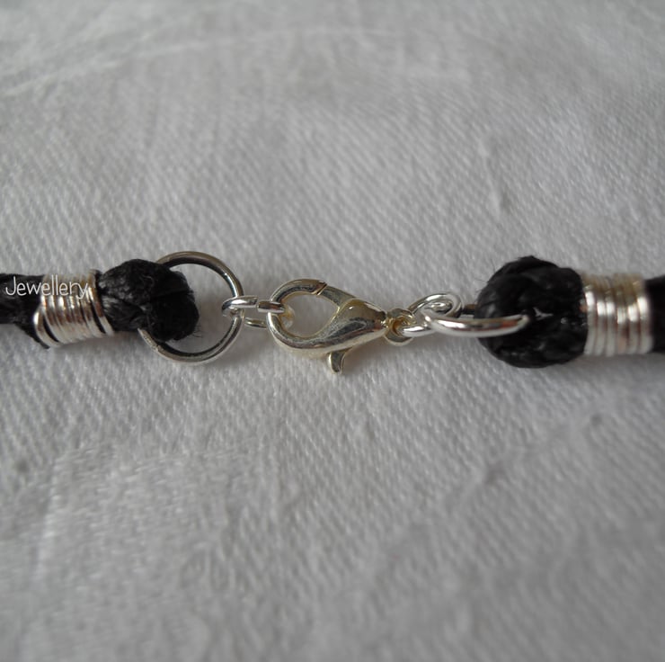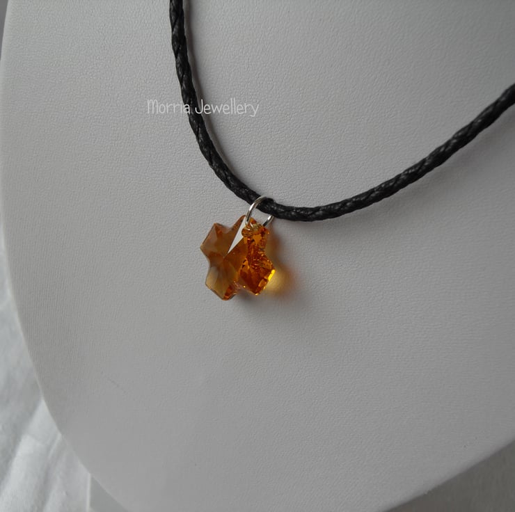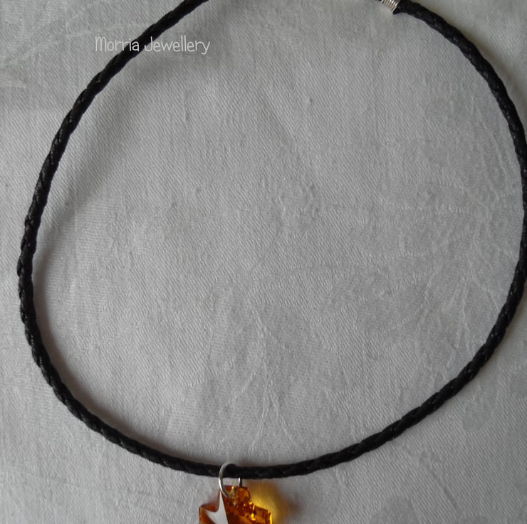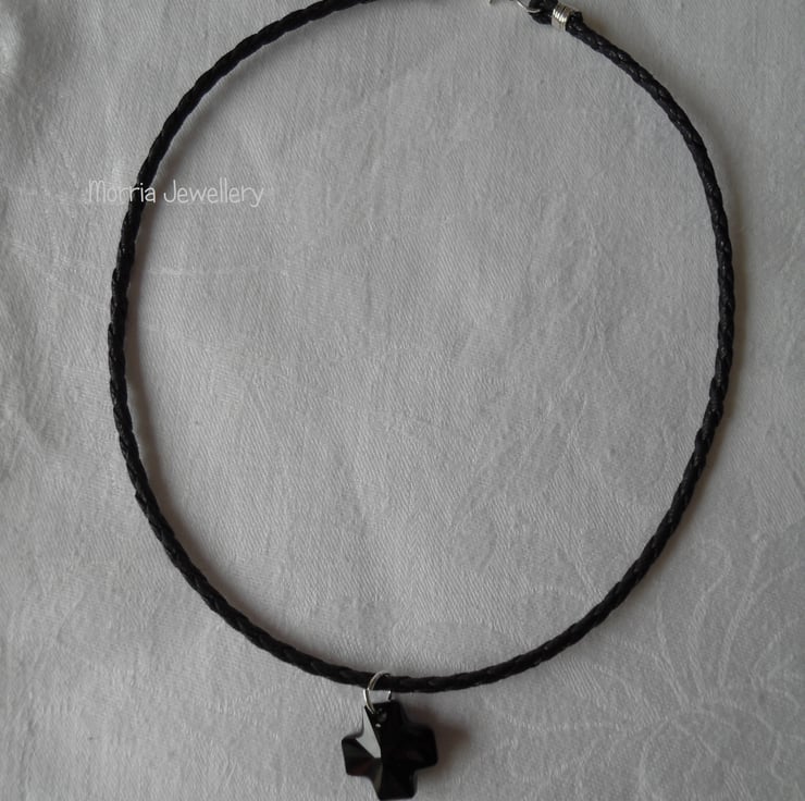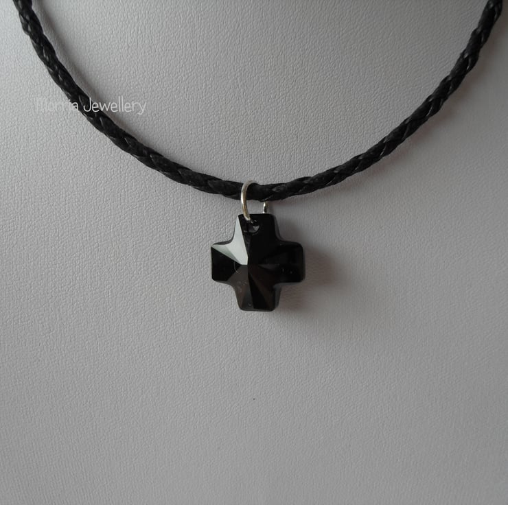 These high end crystal crosses are divine! I have 1 topaz crystal crosses and 1 black crystal crosses, each has been threaded onto black, plaited waxed cord. They are fastened with a silver plated lobster clasp and ring.