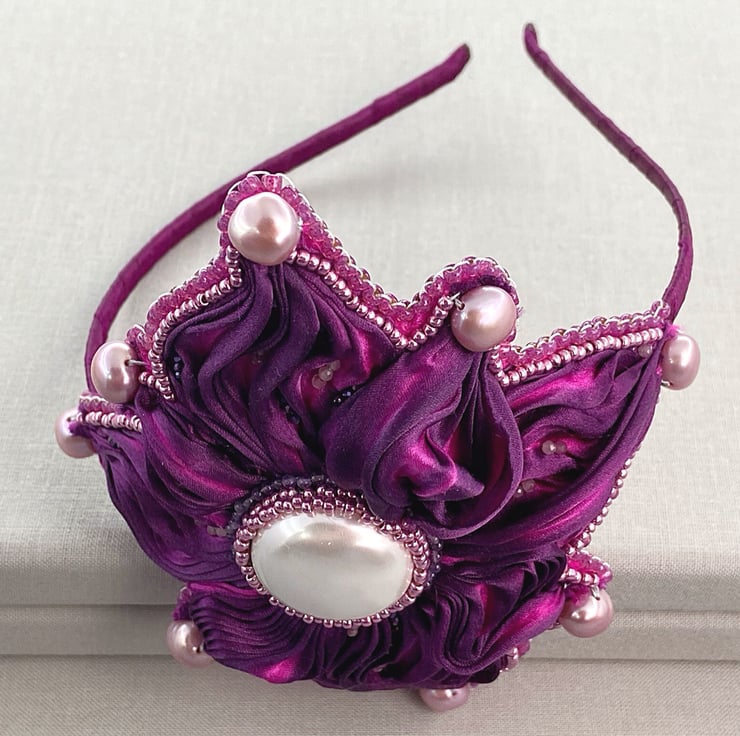 Cadbury Purple Large Silk Flower Pearl & Rubellite Floral Fascinator Headband
