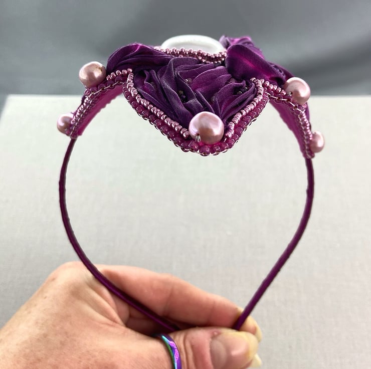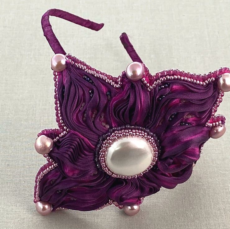 Cadbury Purple Large Silk Flower Pearl & Rubellite Floral Fascinator Headband