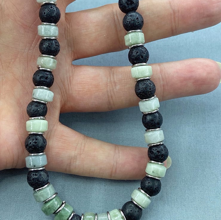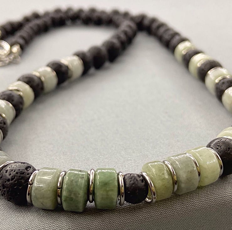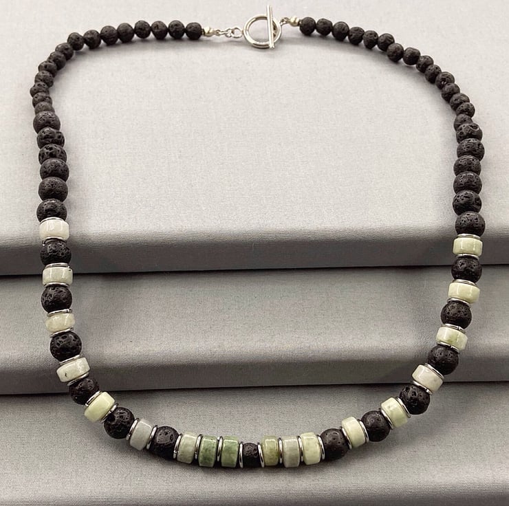 I do have a matching necklace to complete the look, you can view that here - https://folksy.com/items/7802587-Men's-Black%20Lava%20Rock%20&%20Burmese%20Jadeite%20Jade%20Beaded%20Bracelet%20Stainless%20Steel