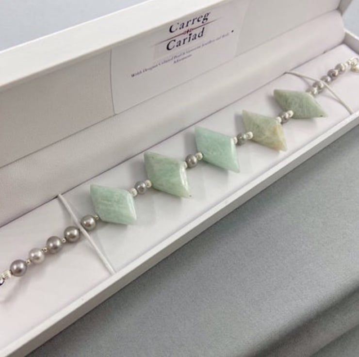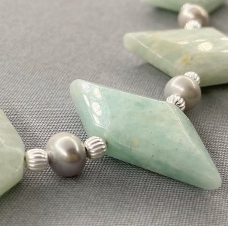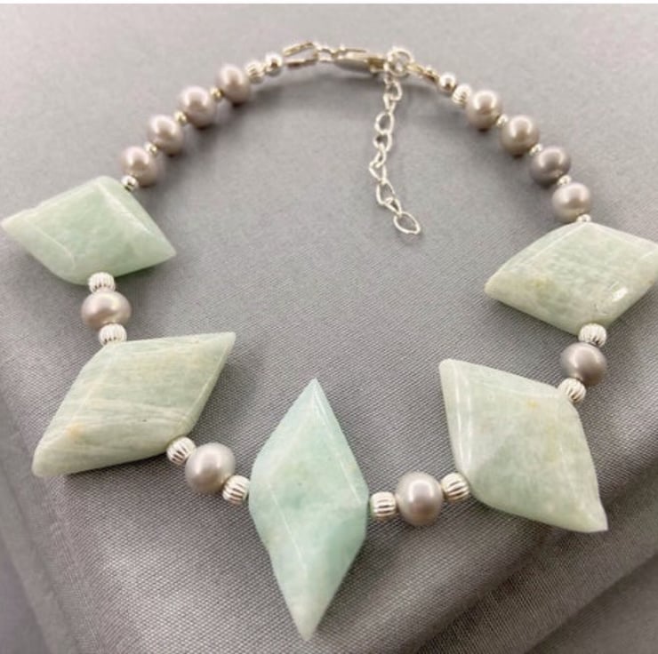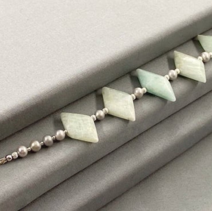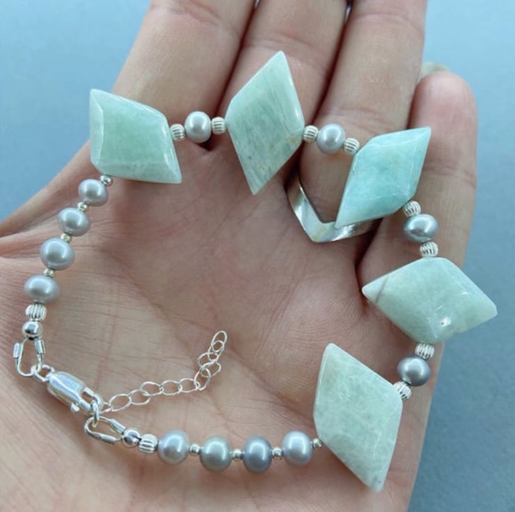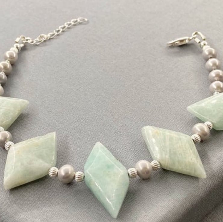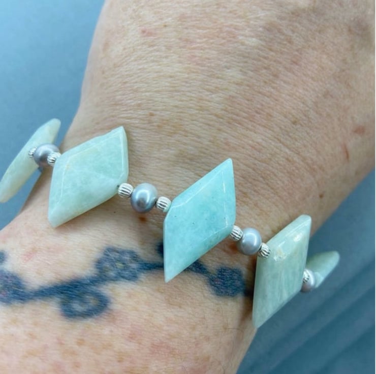 Amazonite & Cultured Pearl Diamond Shaped Bracelet
