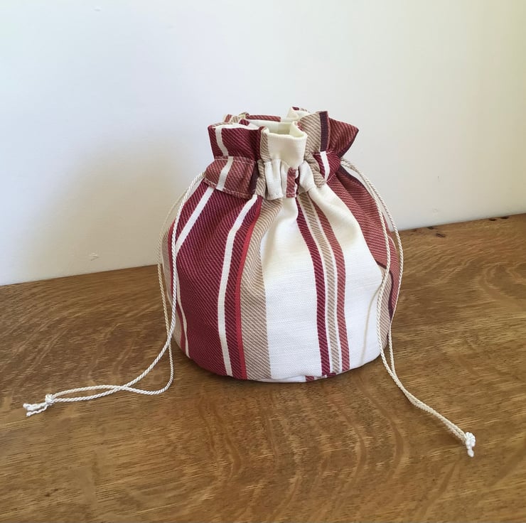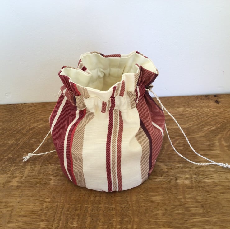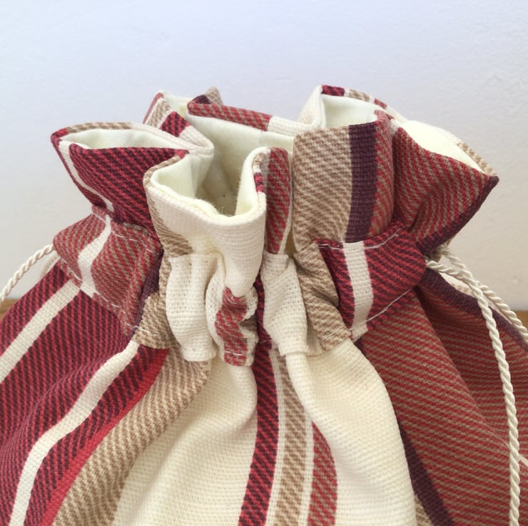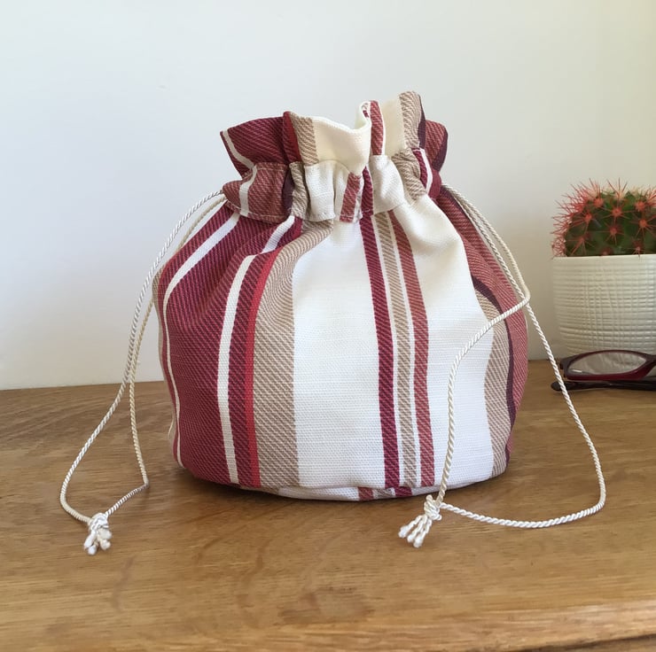 Striped drawstring bag perfect for a gift bag, to keep cosmetics in or any other bits and bobs.