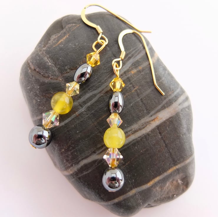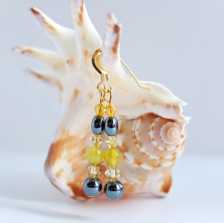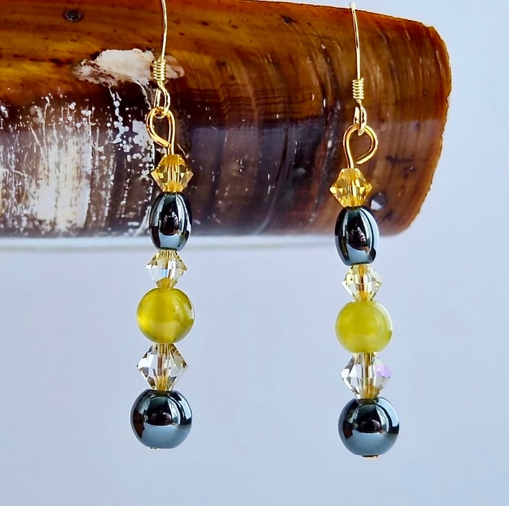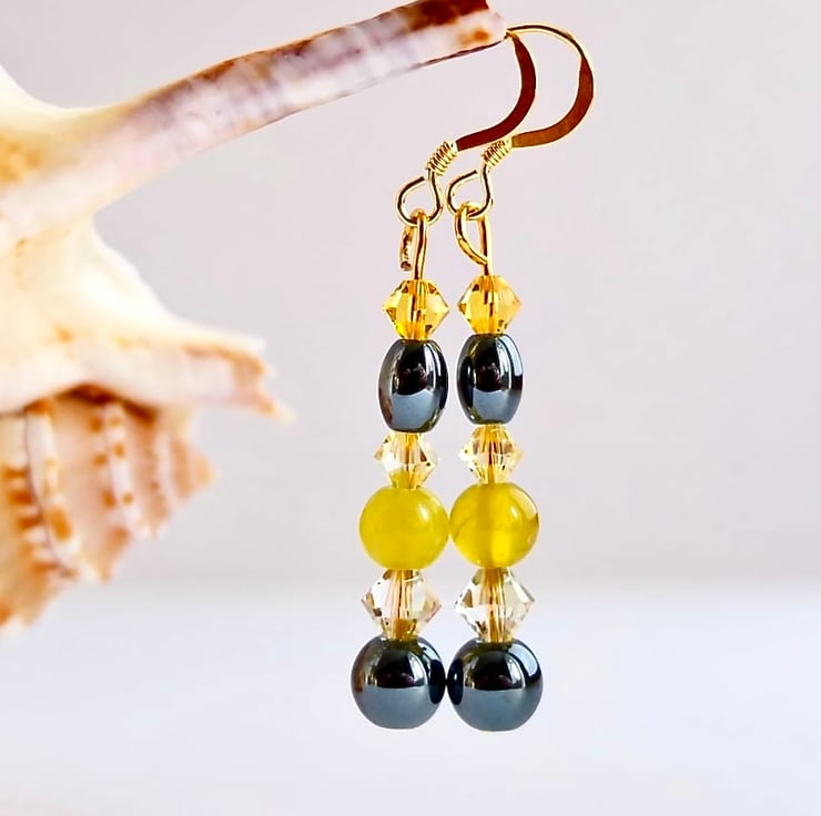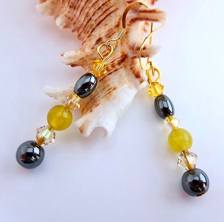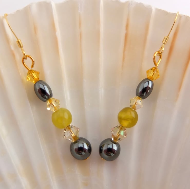 These sparkly Swarovski crystal earrings, in the colours "luminous green", "light topaz" and "jonquil", catch the light beautifully.
