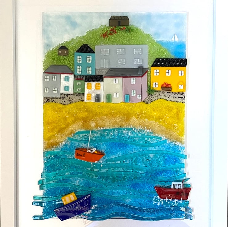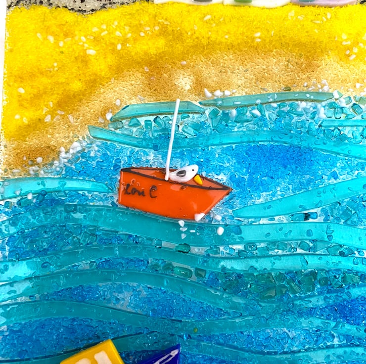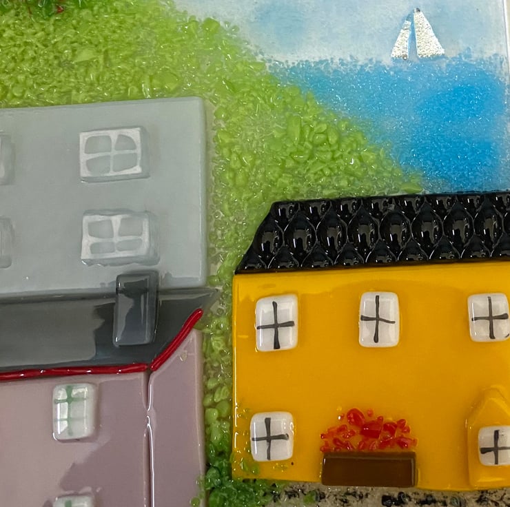 Gorgeous and packed with details this fused glass art measures 17 in x15 in and would bounce light and colour into any room . These pictures are made to order so slight variations occur due to the handmade nature of the item . All fused glass which is hand cut and formed over 3firings in my kiln . The glass is super smooth and shiney with a contoured 3dimensional look . A really special addition to your home .