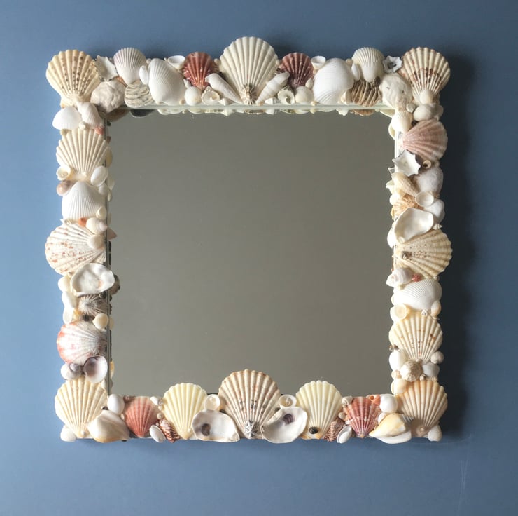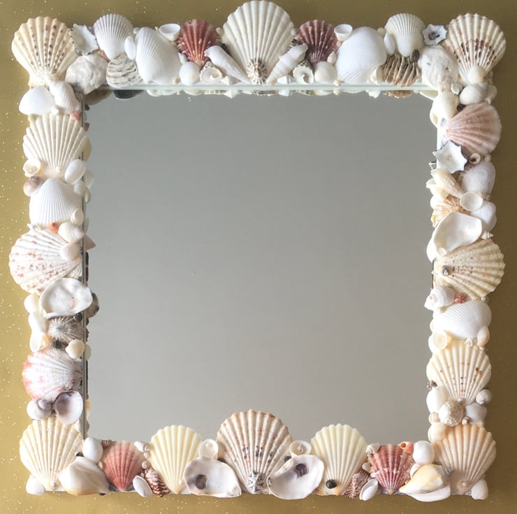 Unique and individually made handcrafted natural seashell mirror