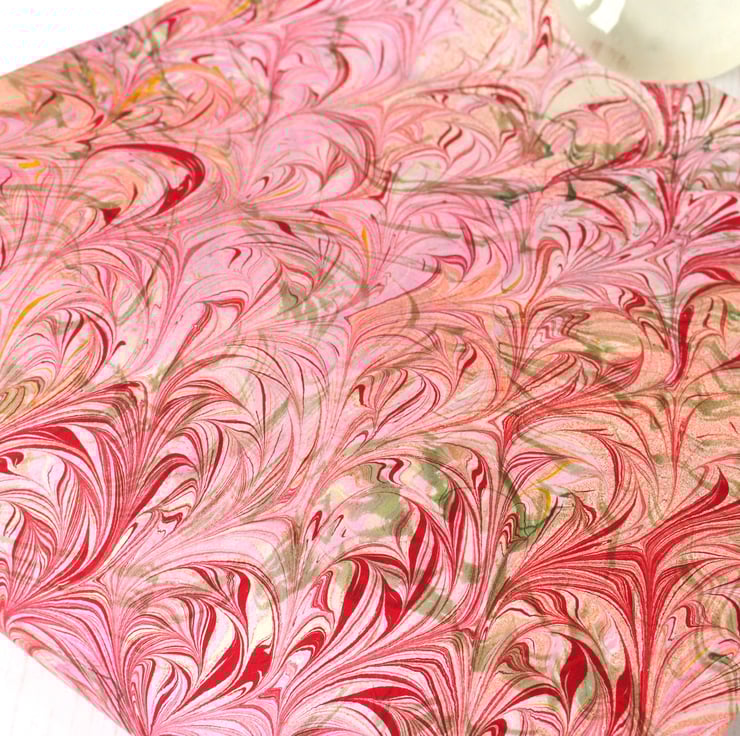 The result is a a multi layered effect where the first marbling shows through the top marbling and gives beautifully detailed pieces.