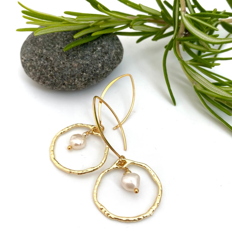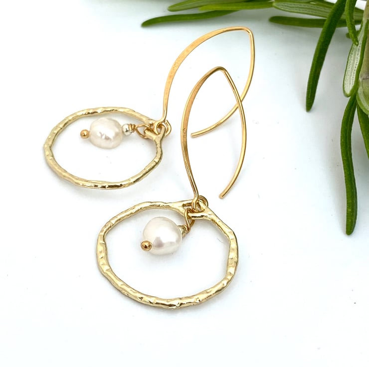 Pearl Gold Organic Hoop Earrings.