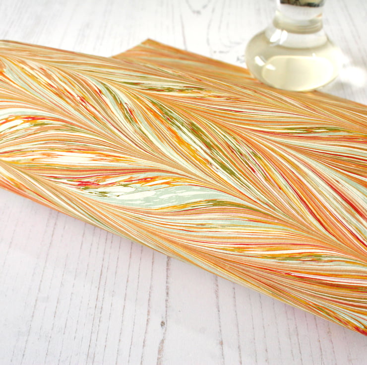 Every one of the sheets I sell are created by me from start to finish and due to the marbling process, each sheet is unique.
