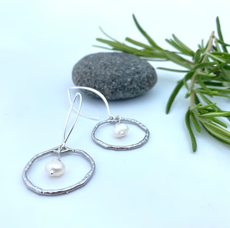 Quite big but light in weight randomly knobbly hoop earrings with real pearl details.