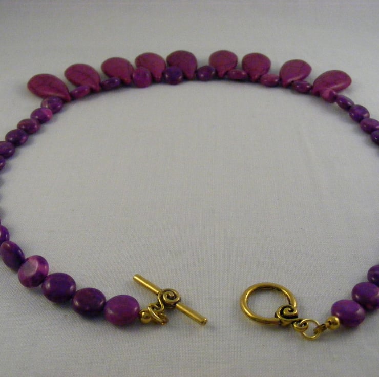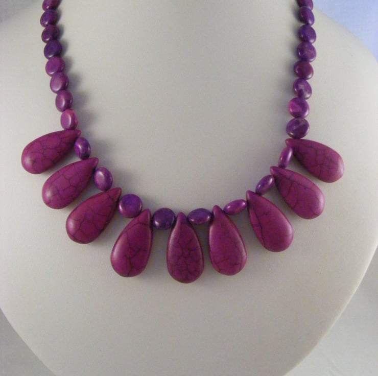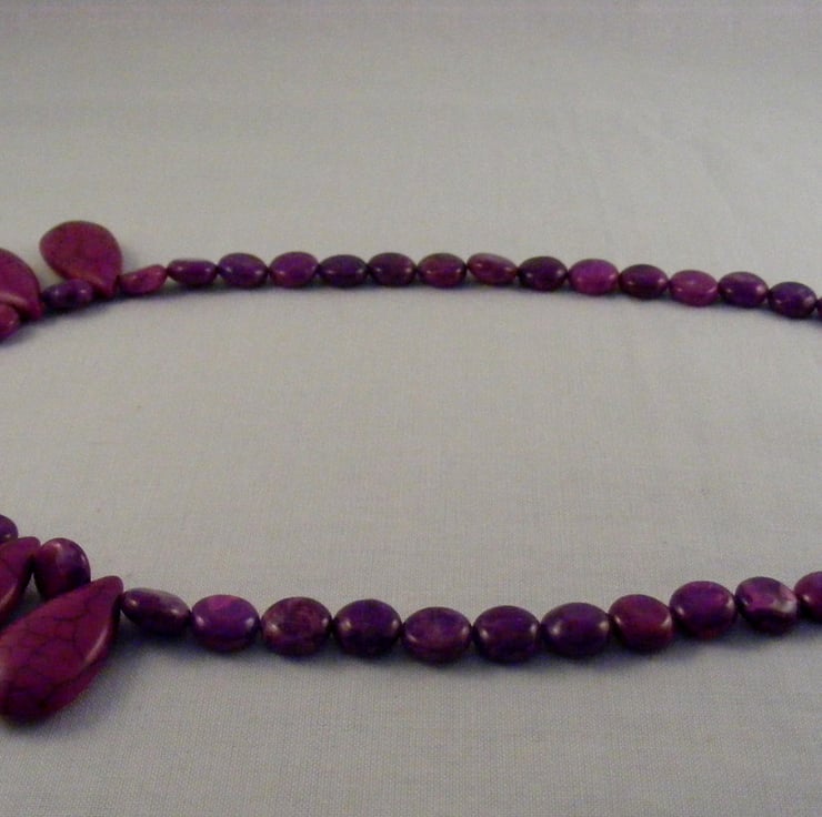 A lovely gemstone necklace handmade with, 30 x 15 mm purple howlite drops and