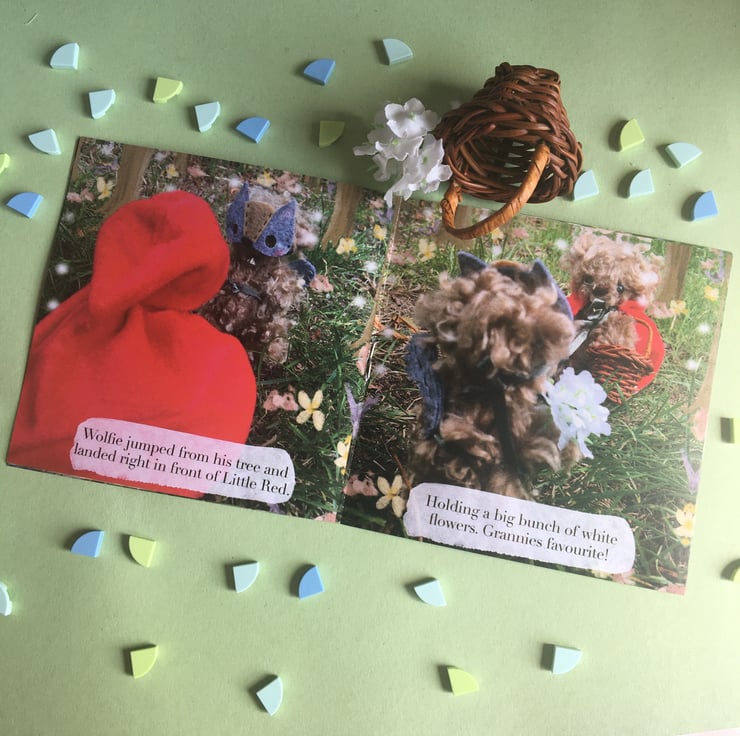 They are 10cm by 10cm mini zines that have 12 pages (including cover) and tell a little story about Little Red and Wolfie but it is possibly not the story you are expecting. 130mg silk paper, high quality printing and staple bound.
