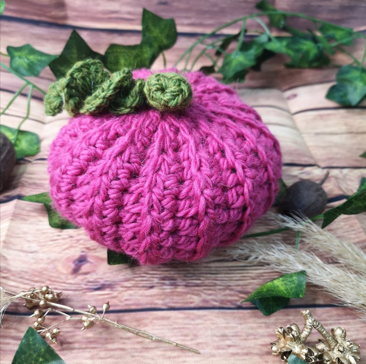 Medium pink pumpkin 12cm diameter x 10cm tall.