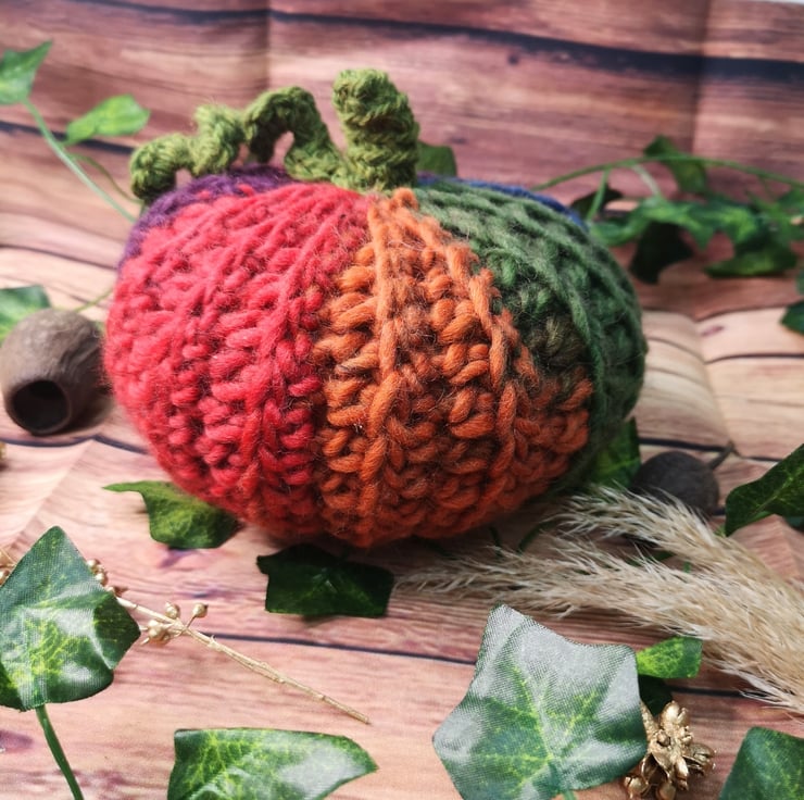 These pumpkin are crocheted with 100% wool and stuffed with the leftover sheep wool from the mill process of creating yarn in Scotland. Except the small mustard pumpkin which is cotton and stuffed with 100% wool.