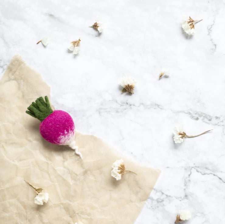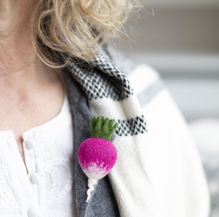 The often overlooked radish completes our rainbow of fruit and vegetables. Each one made from 100% Merino wool roving, they are soft, tactile to the touch and quirky enough for any avid 'grow your own' gardener!