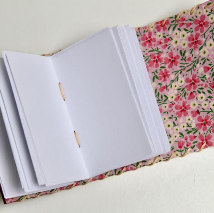 All lined with a gorgeous floral (or non floral) fabric and filled with plain paper, lined paper, recycled paper or watercolour paper.