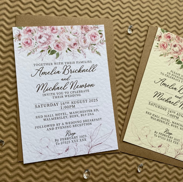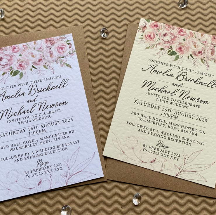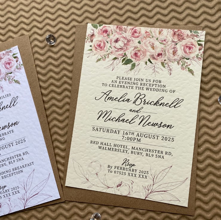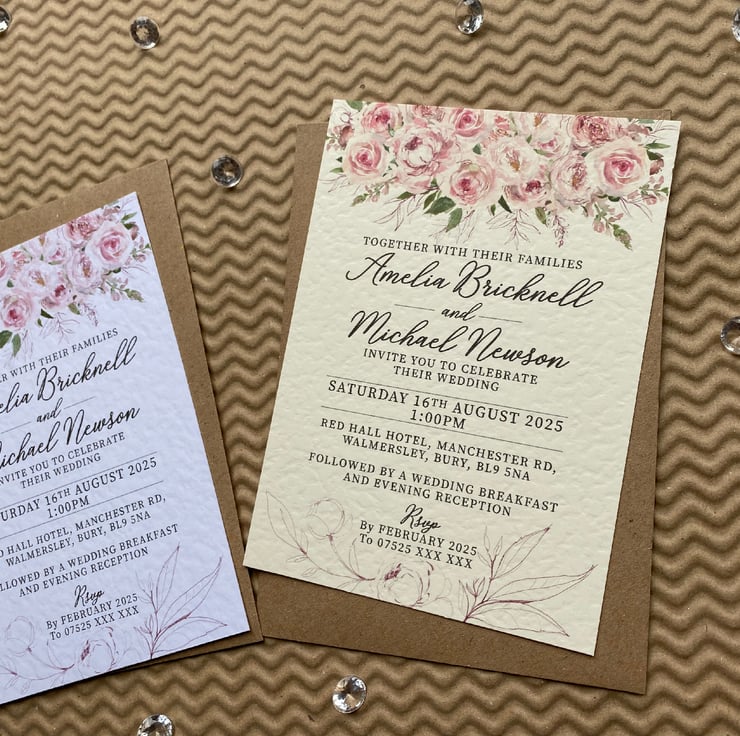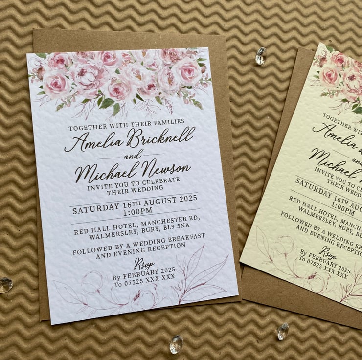 Quantity 1 includes 10 x (A6 or A5) size single sided personalised invitation cards