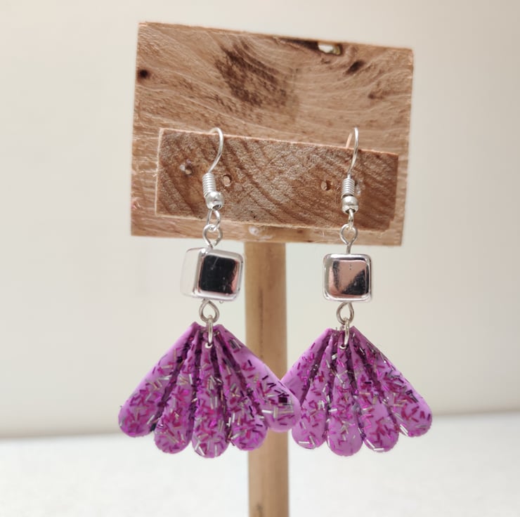 Hand made polymer clay earrings with glitter flakes connected to a silver coloured bead. Hook style fixing that can be painted with hypo allergenic coating for free on request.. Please see all photos for close up detail. All products handmade therefore there may be minor imperfections. Each pair sold as seen, message for more info