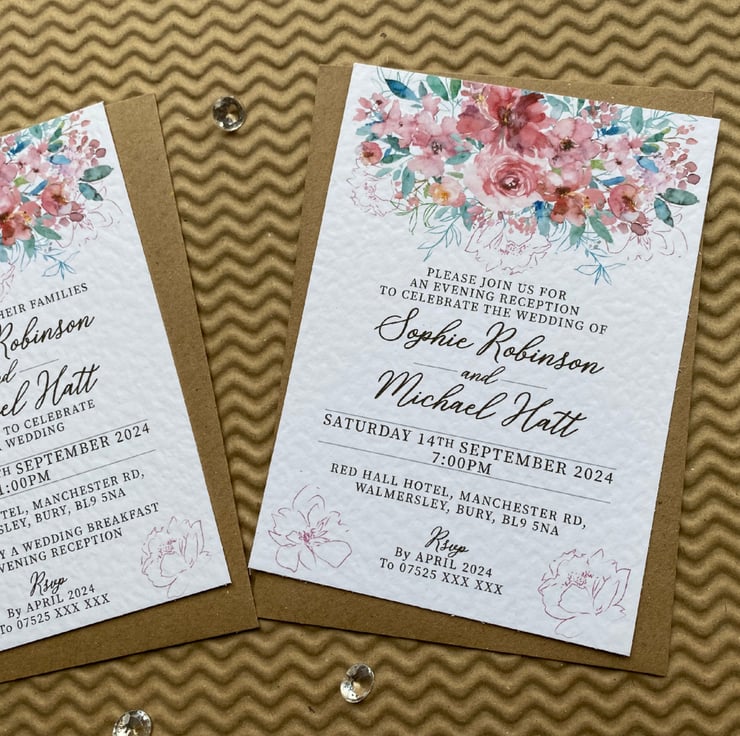Quantity 1 includes 10 x (A6 or A5) size single sided personalised invitation cards