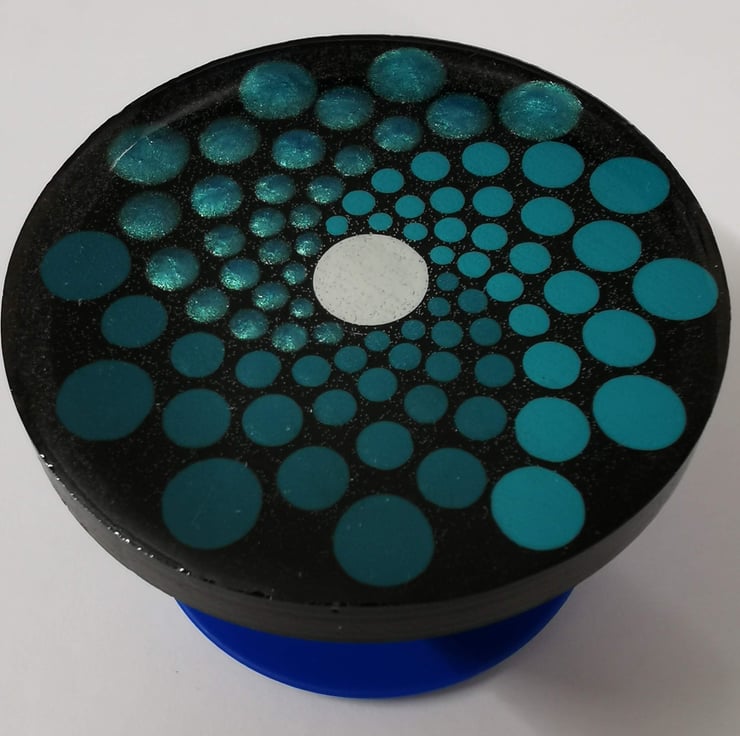 Beautiful hand painted dot mandala phone grip in Blues and Teal. The top is made of hand cast super strong resin.