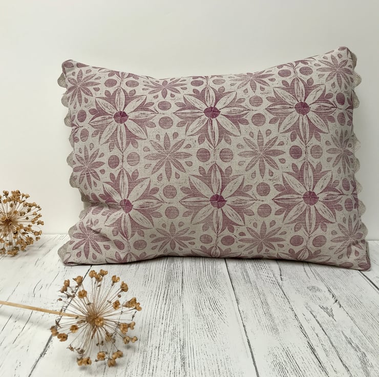 A beautiful hand printed Oblong Cushion, perfect for adding the finishing touch to your home
